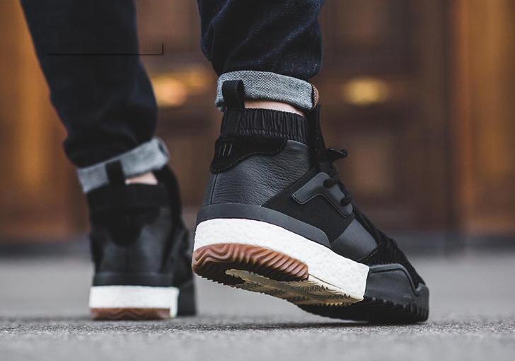 别的,以80年代篮球鞋为蓝本的adidas Originals×Alexander Wang最新联名AW BBall球鞋系列发布,这双鞋以BOOST鞋底重塑复古鞋身,混合了皮革与弹性布料,加上倒置的三叶草冲孔Logo的加长鞋舌和束口式鞋领,显得更为摩登。定价为260美元。