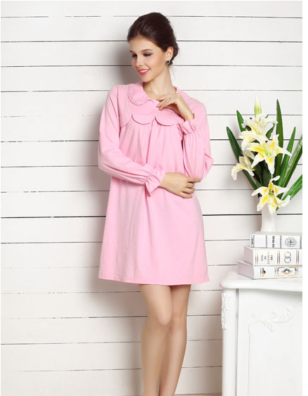 一款甜美的睡裙配着小小的蝴蝶领,修饰和颈部线条,突出美丽的锁骨,加上可爱的荷叶袖口与领口相互辉映,更显活泼,宽宽的腰身不挑身材,穿着舒适更自由,飘逸的裙摆更显腿细,显得性感又有诱惑力,演绎着浪漫的唯美。