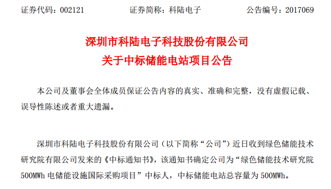 当前位置: 首页 > 新闻中心 > 安福家园资讯 > 科陆电子中标500MWh储能电站项目 中标总金额约15亿