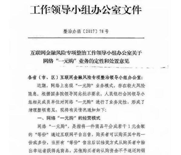 近来,国家互联网金融风险专项整治领导小组办公室下发《关于网络“一元购”业务的定性和处置定见》(下称定见),部分网络“一元购”清晰被定性为变相赌博或许欺诈,相关部分将对其打开新一轮整理整理作业。