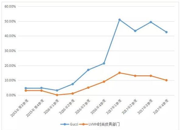 近2年来Gucci和LVMH旗下时髦皮具部分的增速比照 制表:莆田安福
