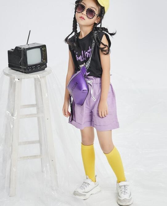 跟着服饰领域的开展,衍生出了很多的穿衣风格。家长们能够为女宝宝调配出一身潮感造型,凸显出孩子特性。上身选择一件黑色的无袖背心,色彩经典百搭,中心增添了紫色英文图案的规划穿起来更具时尚感。下身调配一条紫色的休闲短裤,色彩清新甜美,休闲天然。再调配一双浅色系的运动鞋,组合调配一双黄色的长筒袜,提高造型的时尚度,再佩带一顶黄色的棒球帽,打造出了活力的潮感造型!