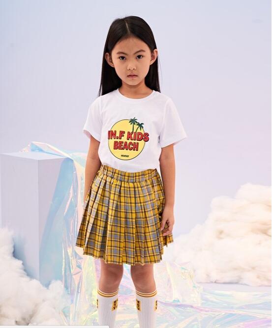女童LOOK:给女宝宝穿搭,家长们能够在造型中运用一款半身裙。上身选择一件白色的短袖,色彩清新百搭,中心增添了充满夏天气息的椰树图画,增添了造型的兴趣感,符合夏天的氛围。下身调配一条黄色格纹半身裙,色彩亮眼穿起来有生机,格纹元素经典时尚,穿起来俏皮心爱。再调配一双小白鞋,打造出了生机兴趣的女童造型!