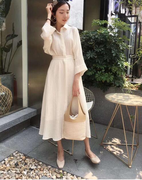 一袭纯白色连衣裙极为清爽大方,彰显满满的小清新与甜美感。半袖的设计更好的遮挡住太阳侵略,整体来说非常的秀丽,像是仙女下凡哦!