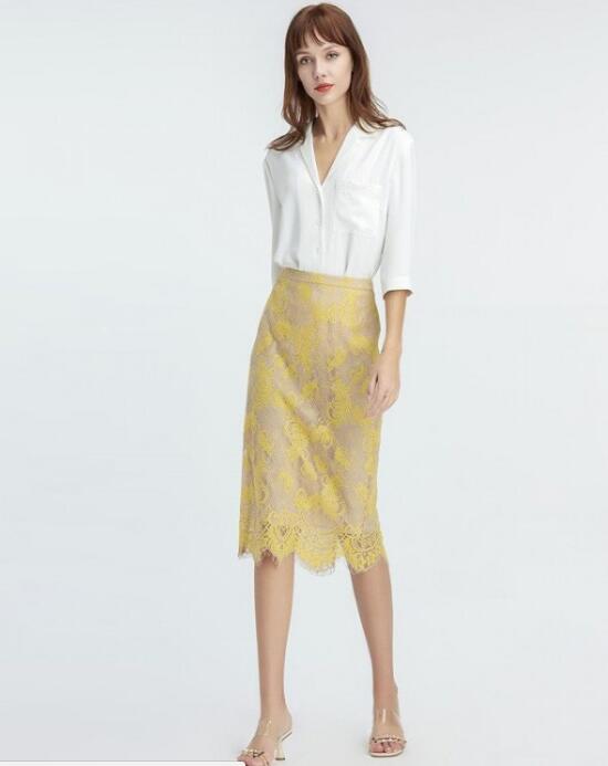 对于officelady来说,夏季半身裙是上班的必备单品。挑选半身裙,蕾丝裙可以大胆尝试一下。蕾丝本身就是一种极具女人味的元素,蕾丝包臀款式的半身裙,简约中透出无限风情,优雅、温柔,知性更高级,搭配上面料一流的白色衬衫,完美诠释了知性成熟女人的优雅魅力!