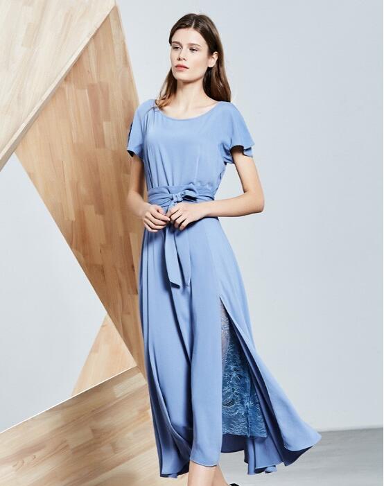 看惯了规规矩矩的连衣裙之后出,仿佛所有的一切都是千篇一律的,这时候来一款不规则连衣裙,在爱天,这款蓝色连衣裙穿上身看着超凉爽的对不对?腰部收腰的设计,上身就拥有大长腿的既视感,你看,双腿的比列是不是瞬间拉长许多,裙摆处开叉蕾丝的设计性感优雅,脚上搭配一双白色凉鞋,整体的风格优雅显气质,越看越高级了!
