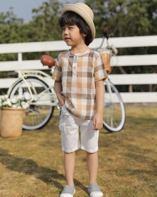 莆田安福家园童装灰色帆布鞋款式搭配,帆布鞋或者小白鞋的单品适合四季,上衣可以搭配一件格子上衣,棉麻面料的修饰,舒适又清爽,下身一条米色或者白色短裤的配搭即可,这样的装扮适合配上灰色的鞋子。