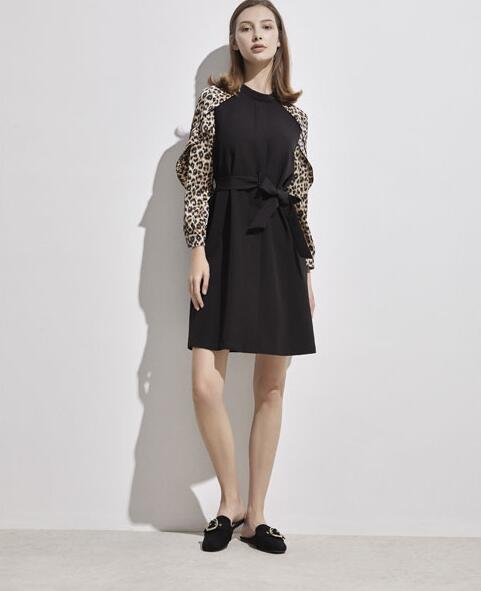 黑色小裙子是经典,这一件插肩袖裙子采用了豹纹装修袖子,且采用了花边作为点缀,打破了黑色等沉闷乏味感,腰间绑带蝴蝶结轻松束出曼妙的身姿,小编爱了爱了。