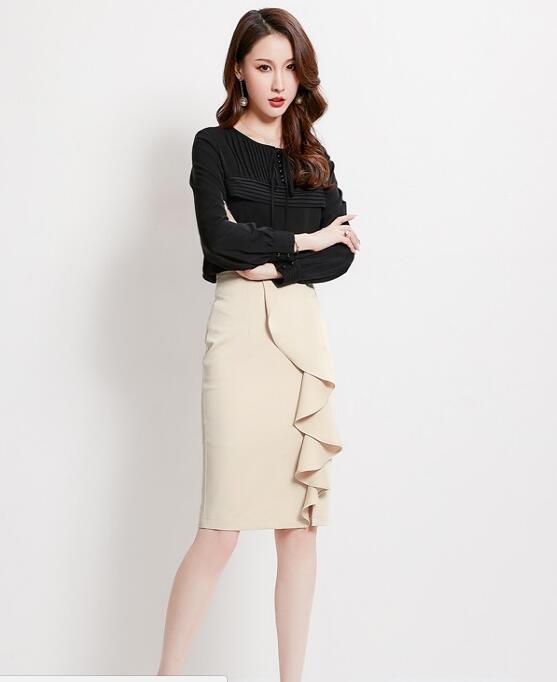 半身裙简单好搭配,又有很好的多变性搭配不同的上衣会有不一样的风格。这款半身裙颜色上采用的是温柔的杏色,简单大气的修身款式能够很好的凸显完美的身材曲线。裙身的花边不规则设计更是增加了几分甜美气质感。上身搭配一款简单的黑色衬衫即可轻松穿出职场气质范!