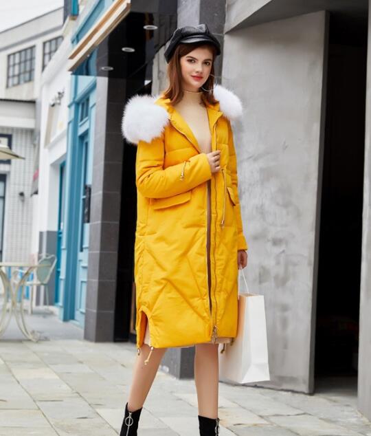 黄色的羽绒服你有尝试过么,这款外套看起来很好看,版型是那种宽松的穿在身上舒适简约,衣摆处的设计很有意思,内搭一件白色的上衣,半领高的设计很是温暖,很有纹理的设计更是彰显了这款外套的时髦程度,口袋的设计很是使用小巧,搭配一双高跟鞋,整体的造型简约大方,穿在身上很是好看。