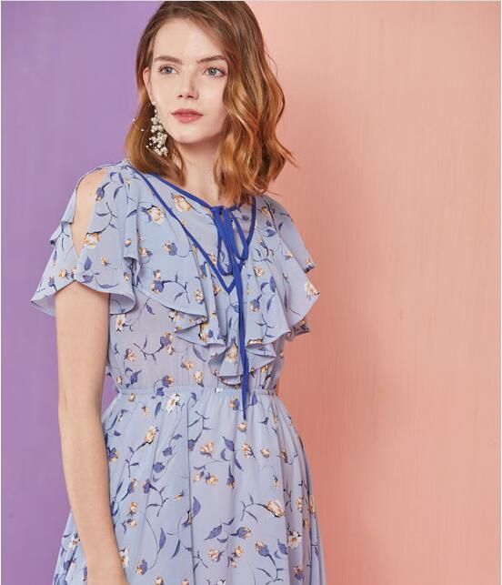 有时候观看服装时,往往都有一种感觉,给让一种许久不见的感觉。相见恨晚也许也可以利用在服装上吧。这款带紫蓝色的连衣裙,装饰设计上加上了波点,以及肩部拥有开衩的设计。