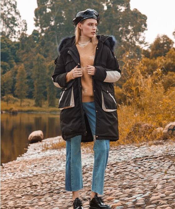 大家在选择颜色方面一般都会选择黑色的颜色进行搭配,因为黑色百搭还显瘦,中长款的造型穿在身上很好看的哦,内搭一件黄色毛衣高领的设计很是好看也很保暖,版型是很修身的一款,下身搭配一件蓝色牛仔裤,高腰的设计让你轻松拥有大长腿哦,搭配一双皮鞋,整体的造型很是优雅大方哦,这款羽绒服穿在身上也很好看的。
