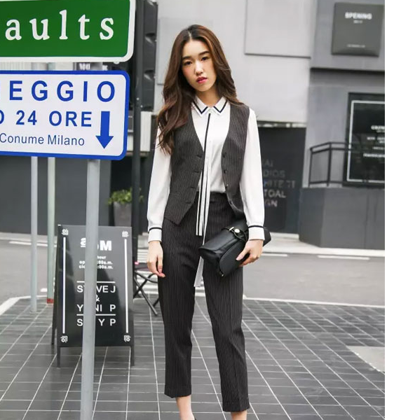 衬衣与九分裤的调配似乎是最简略有用的技巧,一条微喇的牛仔裤或是合体的九分裤,加之衬衣的系带袖口或肩口暴露或外搭马甲等细节的精巧设计,似乎正暗示了你低沉高雅的性格。