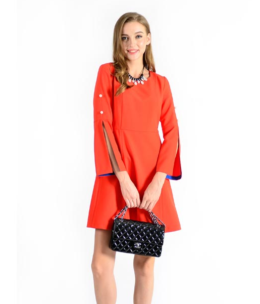 除了大赤色,橙赤色也是相同的亮眼吸睛,更是尽显霸气和温顺。穿上一件橙赤色的圆领橙赤色A字裙,不只显瘦,非常具有规划的袖子,更显特性,调配黑色的绑带高跟鞋,英俊女王与香甜女神能够随时切换哦