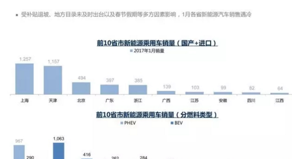17年的1月的交强险汽车销量数据体现北京的新能源车到达494台,其中基本是纯电车型,插混占到1%,由此也决议了全国新能源车商场的发展形式是纯电为主的特征,地方特色决议商场形式。而上海的上牌是1257台,其中7成是插混,纯电动的需求较弱,构成上海形式。因为上海的新能源车数量在17年1月高于北京,1月也是全国商场的暂时成交休眠期。