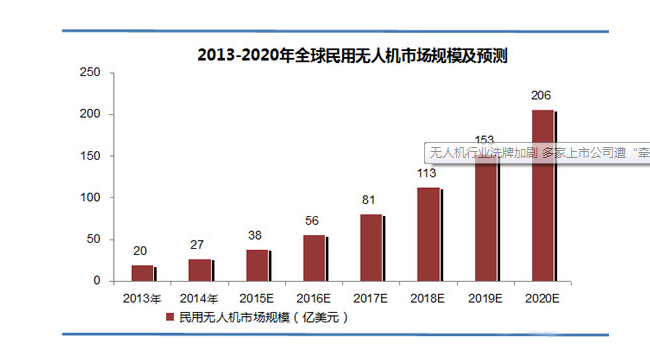 受花费级无人机商场热度的推进,至2016年我国民用无人机产品销售商场规模将得到迅速提高,预计到2020年,全球无人机年销量有望到达433万架,商场规模将到达259亿美元。